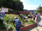 今年度も花組の皆さんが来校され、正門脇の花壇を整備してくださいました。