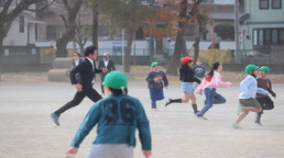 子供たちは元気です。校庭で遊べない印の赤い旗が出ない限り、遊んでいます。