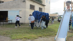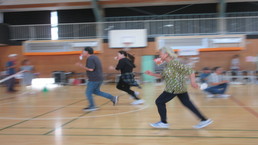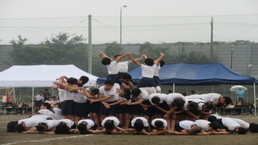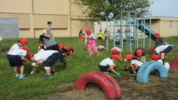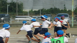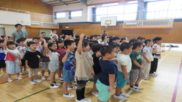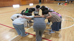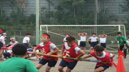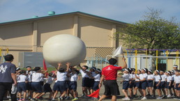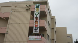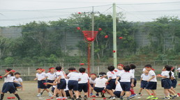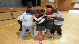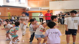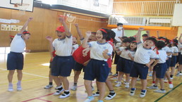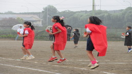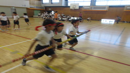 その後、風の里保育園の卒園児を対象に、小学校6年生までの育ちを放課後に見守ってくださる「風の里アフタースクール」のフェスティバルに、子どもたちから招待状をいただき、ふじみ野市総合体育館へ出向きました。た。園児たちは小学生にあこがれをもち、小学生は下級生、園児たちへの思いやりの言動がありと、0歳児から12歳までほのぼのとしながら、体いっぱいに表現競技する姿に感動しました。綱引きする保護者の方々では、声をからしながら応援している子供たちでした。会場全体が一体となっていました。いつも仕事をがんばっているメッセージの垂れ幕がアンパンマンとともに飾られ、子供たちの感謝の思いがありました。