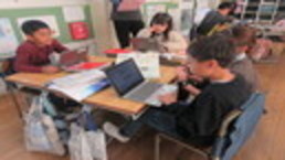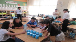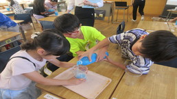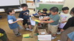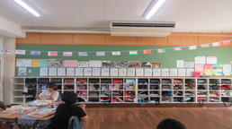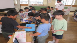各教室では、夏休みに作った作品を友達同士見合っていました。子どもたちの力作は、「夏休み作品展」で保護者の皆様にご覧いただきます。
