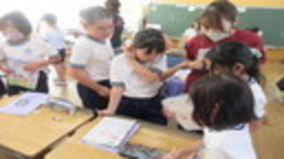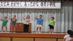 始業式では、校長が夏休みのキーワード「あちょー」(「3つの『あ』と『挑戦』)のキーワードの振り返りから、2学期にのびてほしいこと本校で飼育している「かめ」の「かめこ」にちなんで「いい
