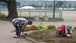 明日、武蔵野町会の秋祭りです。地域のHさん、Kさんが、正門横の草を機械を使用して除草してくださいました。伸びきった草がなくなり、すっきりしました。残暑厳しい中に環境整備をしてくださいました。ありがとうございました。