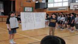 こえ」の話をしました。児童代表の4年生が、夏休みにがんばったこと、2学期の運動会、音楽会への抱負を力強く語ってくれました。