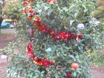 10月といえば、ハロウィン。今年も学校の正門を入ってすぐの花だんとキンモクセイの木に、ハロウィーンの飾りつけを行いました。おばけカボチャやまじょ、ゴーストなど、楽しくかわいいイメージで飾ってみました。子供たちの笑顔を想像しながら作るのが、とても楽しいです。喜んでくれるとうれしいです。