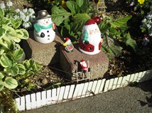 いよいよ12月です。正門を入ってすぐ左側にある花壇の飾りを行いました。テーマは、もちろんクリスマスです。サンタさんや雪だるまも置いてみました。子供たちが気づいてくれるかな。楽しみです。